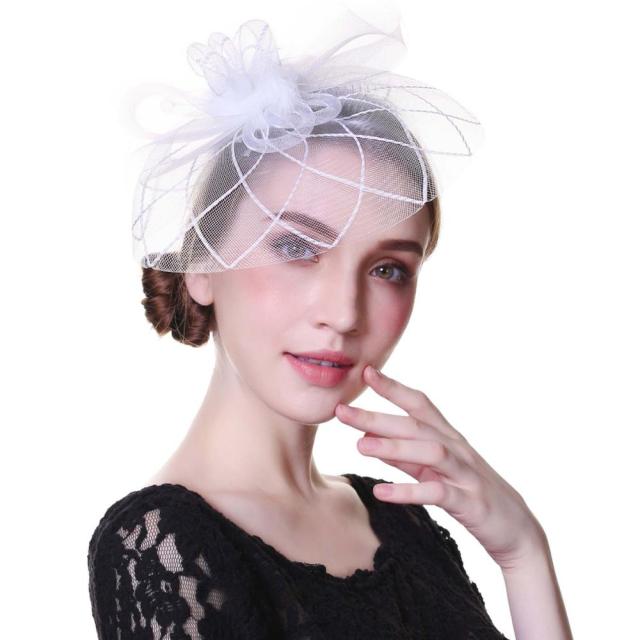 • Load image into Gallery viewer, Flower Net Ribbon Feather Cocktail Headdress