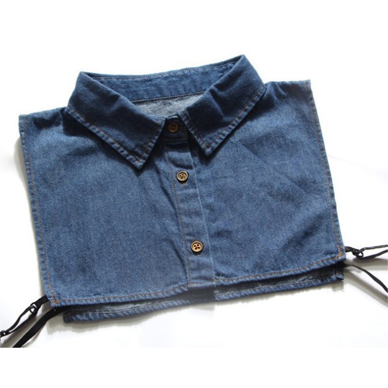 Washed denim cotton fake collar buckle detachable
