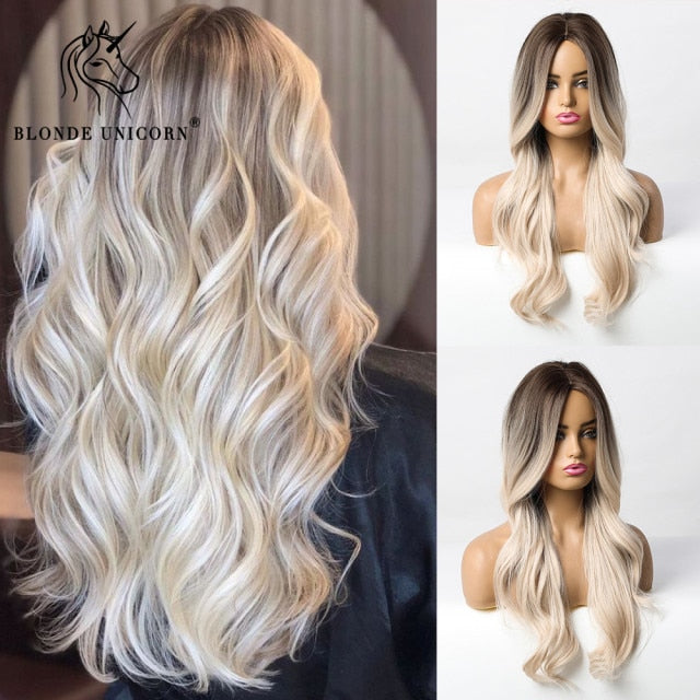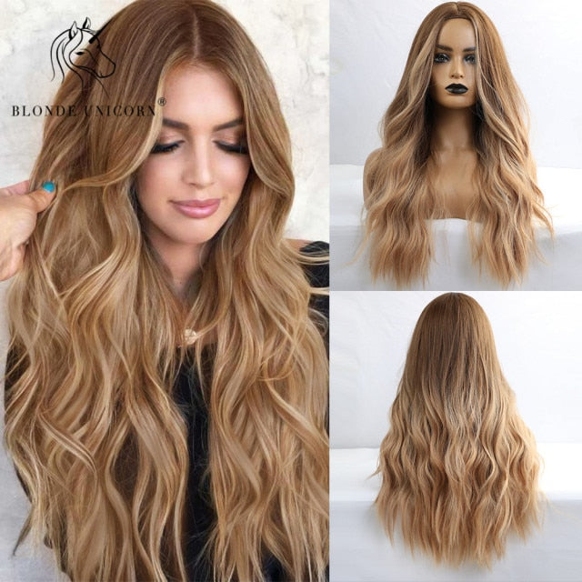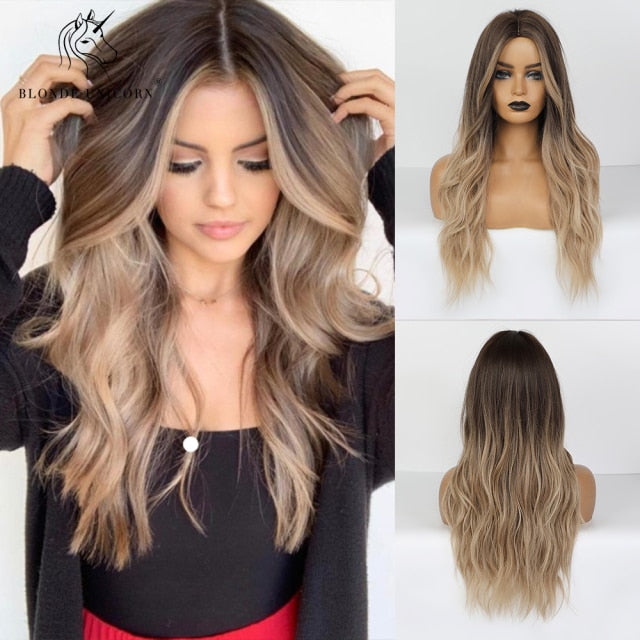 Feature 3: Brown to Blonde Ombre Wigs with Middle Part